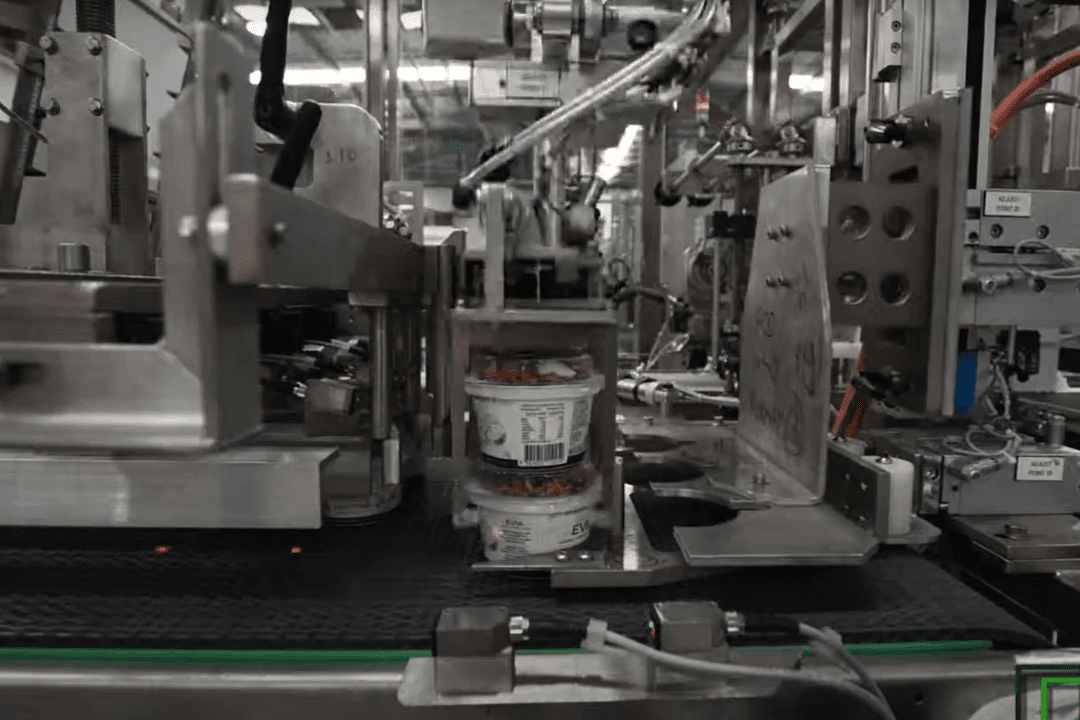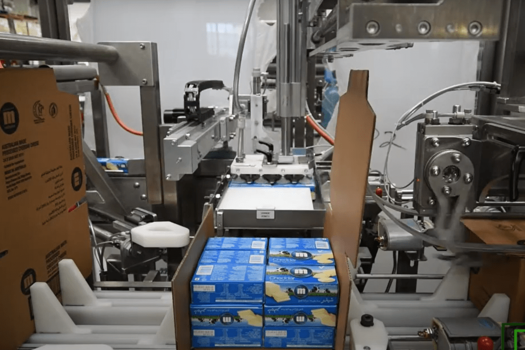 HMPS are experts at packaging dairy! Here is an example of HMPS 7100, the high speed automatic casepacker, collect and pack pouches of yoghurt into wraparound cases. The machine has the capability of packing pouches of different volumes and with either a small or a choke proof cap. Packing 5 different sized products at max